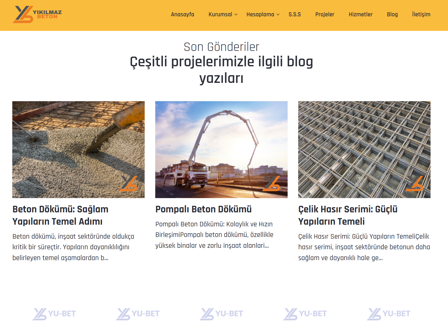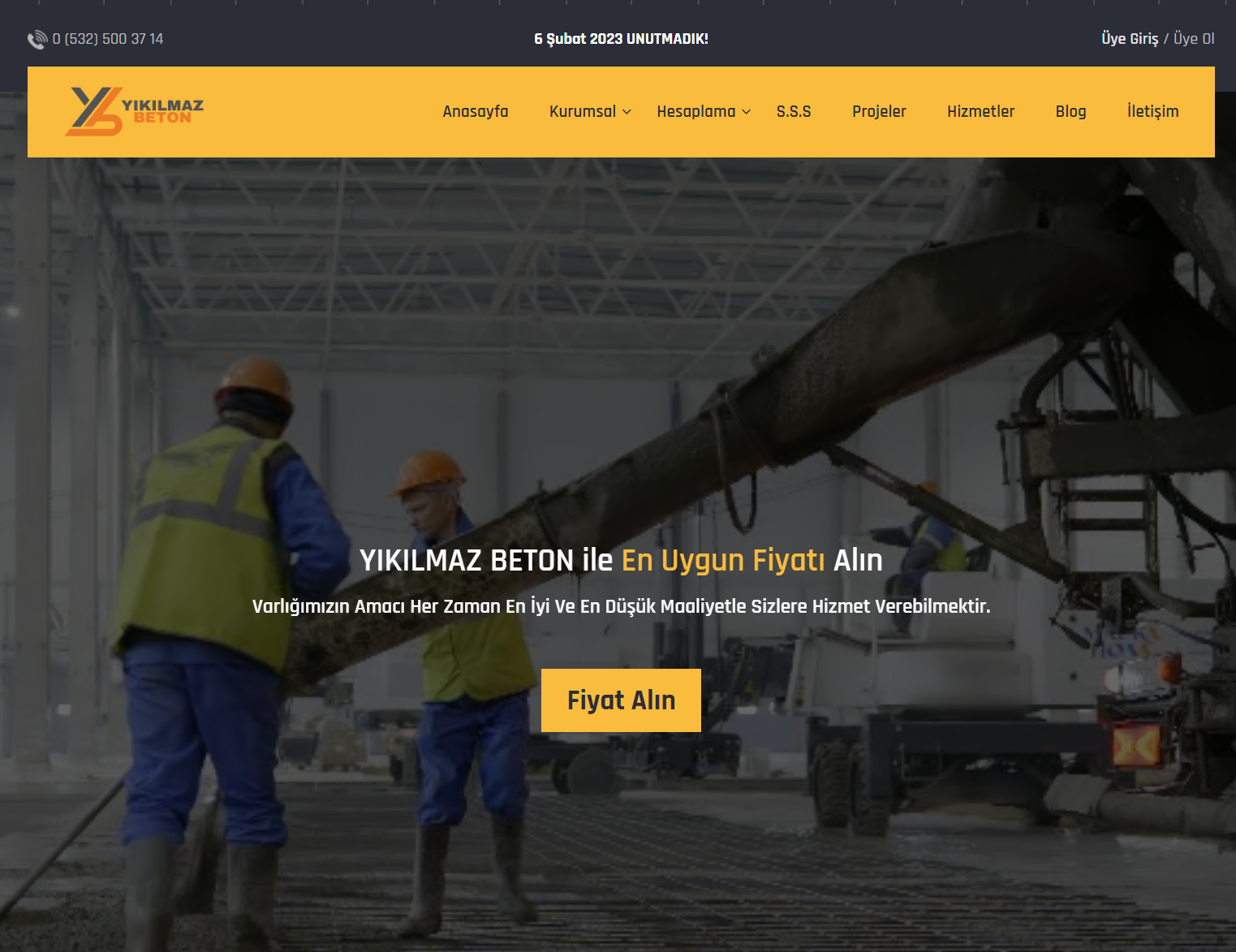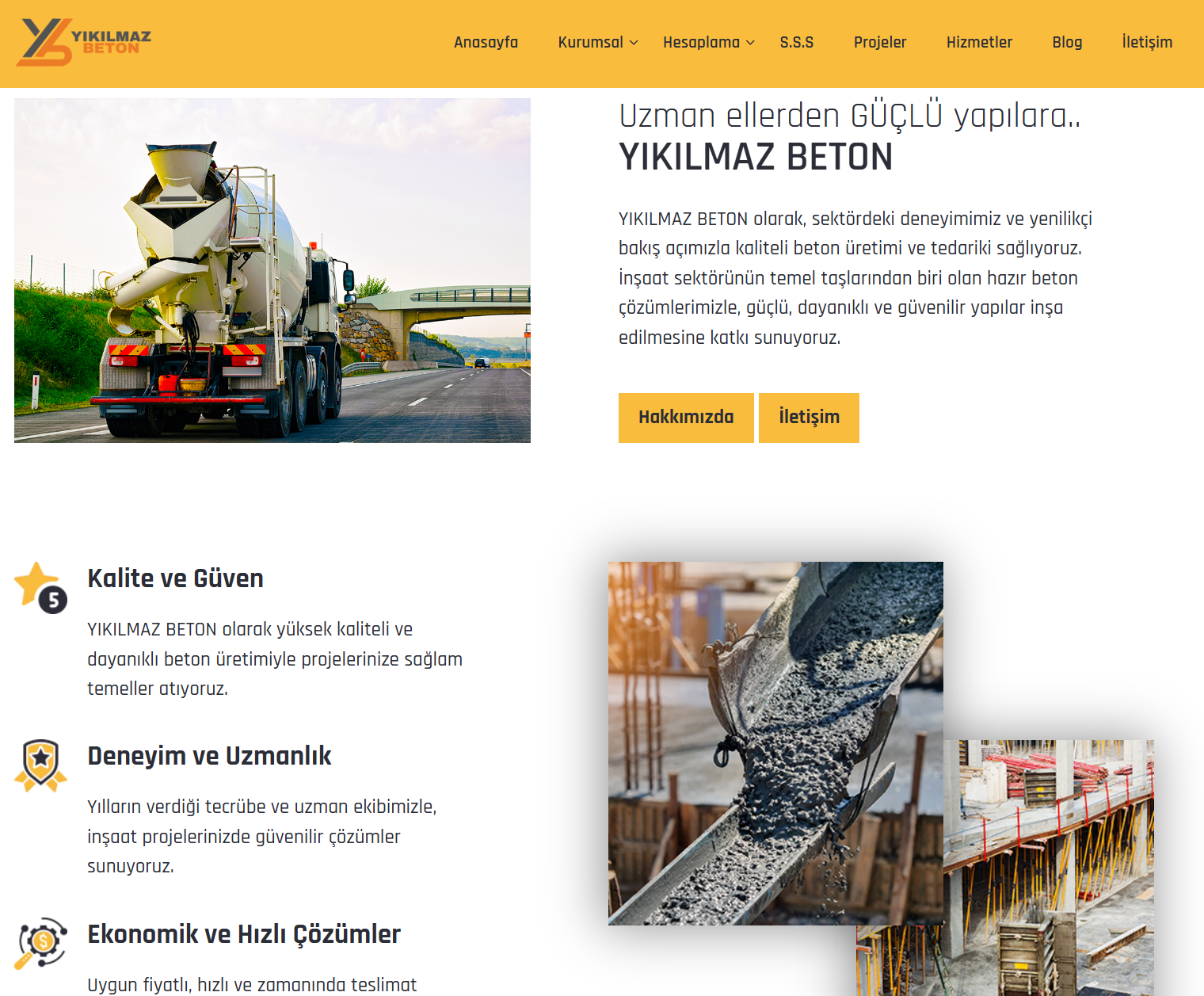 Yıkılmaz Hazır Beton firmasına hazırlamış olduğumuz, kurumsal Web sitesi projesidir.