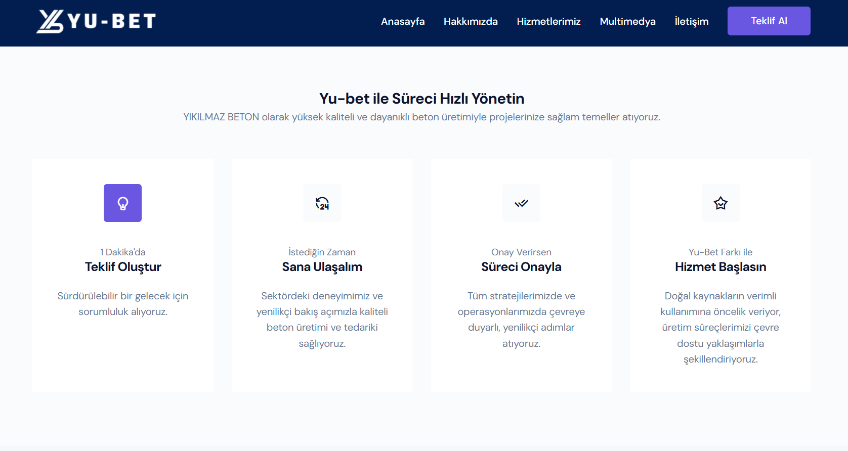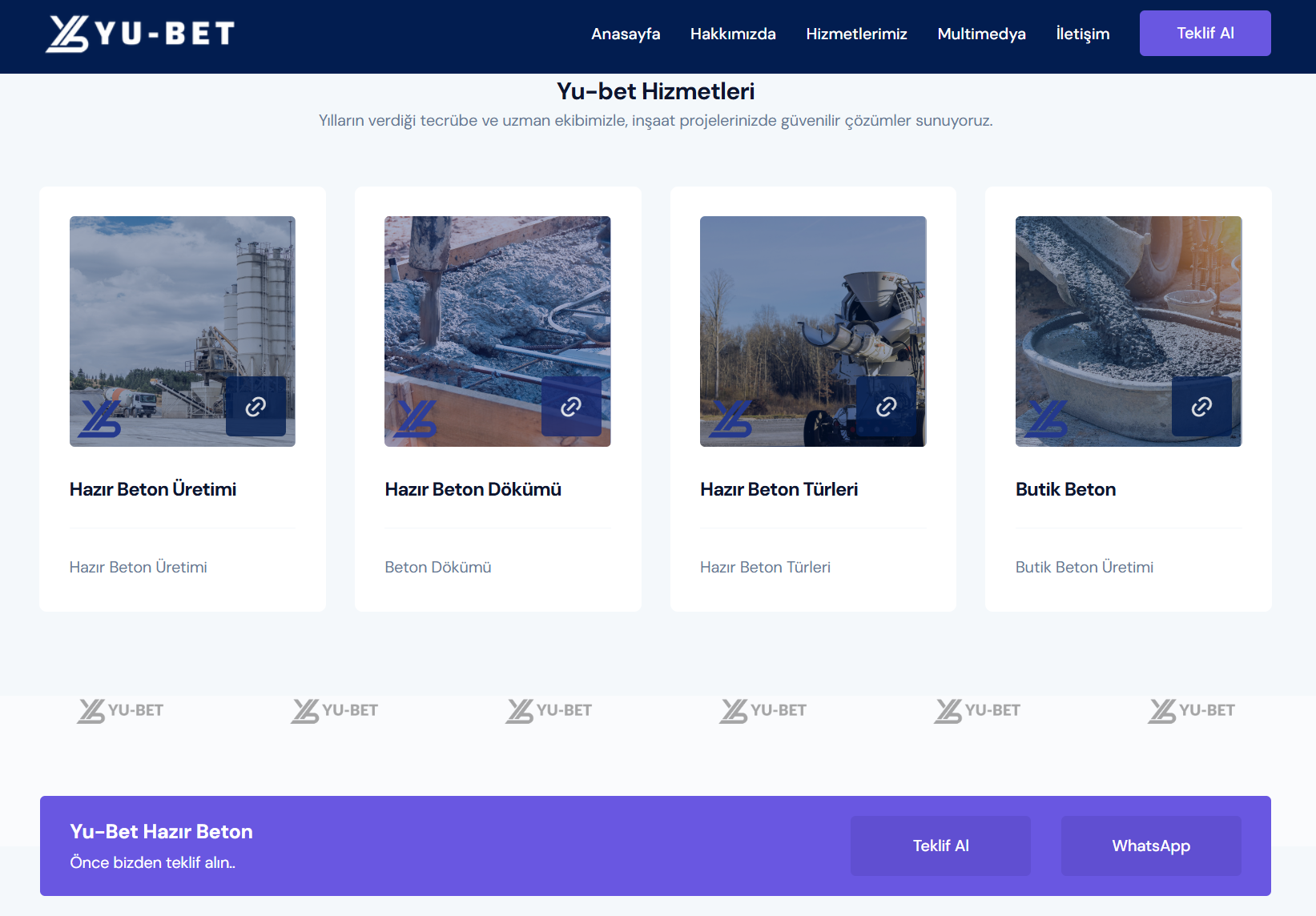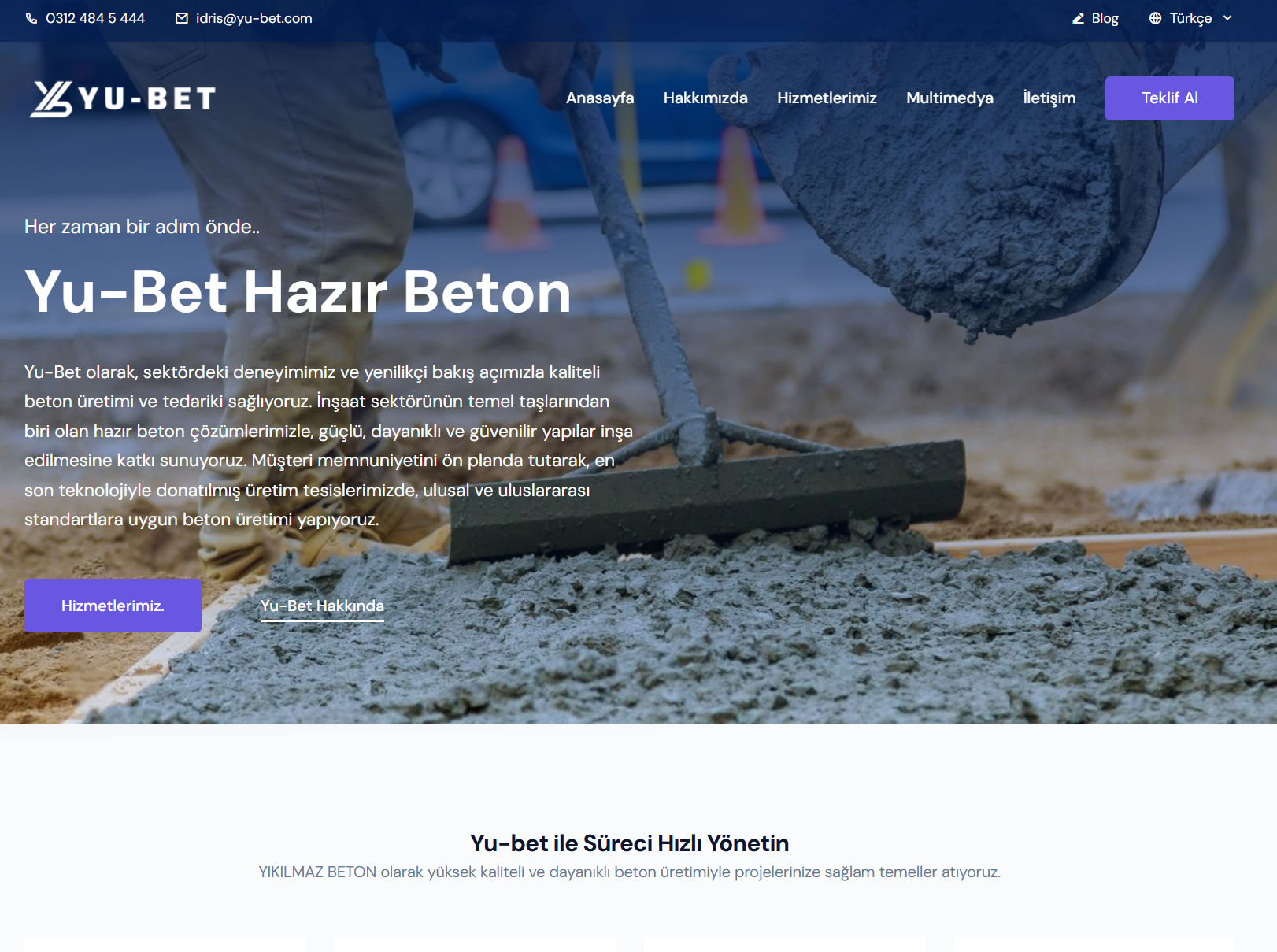 Yu-Bet Hazır Beton için hazırlamış olduğumuz kurumsal web sitesi.